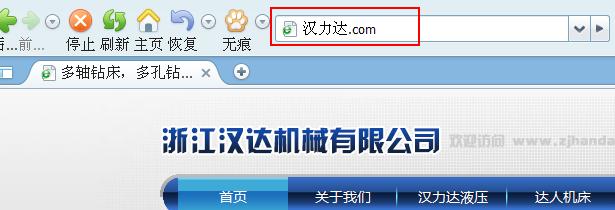 為方便客戶查看我司網站,我司申請了中文域名"漢力達.com" "達人機床.com“,您只要在地址欄中輸入 "漢力達.com” 或者 "達人機床.com" 即可訪問到浙江漢達機械有限公司的官方網站。